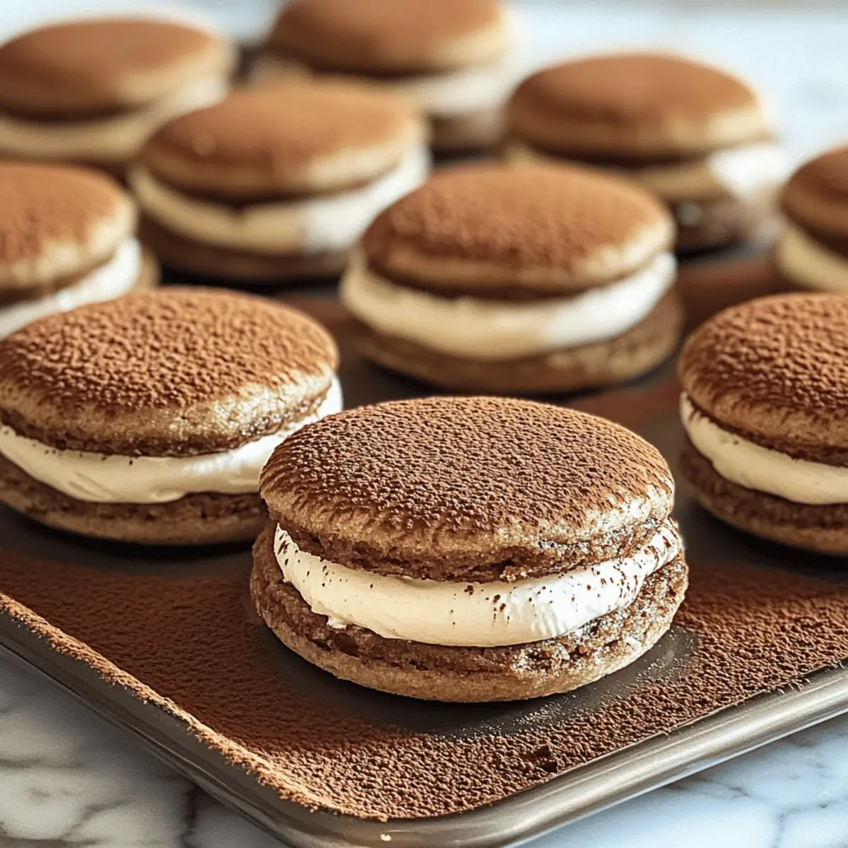 Aller à la recette Imprimer la recetteLorsque j’ai décidé de préparer des biscuits sandwich Tiramisu, je pensais à toutes ces fois où j’ai savouré le classique dessert italien. Imaginez finalement un moyen de transformer cette délicieuse expérience en une friandise à emporter ! Ces biscuits associent des cookies moelleux infusés au café avec une garniture de mascarpone crémeux, le tout saupoudré de cacao pour une touche finale irrésistible. Non seulement ces cookies sont rapides à préparer, mais ils s’adaptent également à vos besoins : gluten-free ou vegan, chacun peut profiter de cette gourmandise. Mes amis me réclament souvent cette recette, et il n’y a rien de tel pour égayer une réunion ! Qui pourrait résister à une bouchée de ces délices ? Pourquoi aimer ces biscuits sandwich Tiramisu ? Une délicieuse expérience : Ces biscuits sandwich Tiramisu transforment un classique italien en une gourmandise à emporter, parfaite pour toutes les occasions. Facilité de préparation : Avec des étapes simples, même les débutants peuvent se lancer sans crainte. Personnalisation : Remplacez les ingrédients pour créer une version sans gluten ou vegan selon vos préférences ! Parfait pour partager : Idéaux pour les réunions, ces cookies séduisent à coup sûr vos amis et votre famille. Texture irrésistible : Un mélange de saveurs : le moelleux des biscuits contrasté par la douceur crémeuse du mascarpone. Succès assuré : Chaque bouchée est un équilibre entre sucré et amer qui ravira les amateurs de café. Vous cherchez d’autres idées sucrées ? Découvrez mes recettes de Biscuits Croquants Chocolat ou le délicieux Tiramisu Aux Fraises. Ingrédients pour Biscuits Sandwich Tiramisu • Découvrez les ingrédients essentiels pour réaliser ces biscuits qui sont une douce tentation italienne ! Pour les biscuits Farine – Fournit la structure; vous pouvez la substituer par un mélange sans gluten pour une version adaptée. Granulés de café instantané – Apportent une saveur de café riche, essentielle pour le goût typique du tiramisu; utilisez de la poudre d’espresso pour un goût plus prononcé. Poudre de cacao – Améliore les notes chocolatées; assurez-vous qu’elle soit non sucrée pour de meilleurs résultats. Poudre à lever – Aide les biscuits à lever, gardant un centre moelleux. Beurre non salé – Apporte richesse et humidité; utilisez du beurre végétal pour une option vegan. Sucre granulé – Sucre les biscuits; vous pouvez le remplacer par des alternatives sucrantes pour une version plus légère. Œufs – Lient les ingrédients; remplacez par des œufs de lin pour une version vegan. Extrait de vanille – Offre une saveur aromatique; optionnelle mais rehausse le goût global. Pour la garniture Fromage mascarpone – La garniture crémeuse qui imite les couches traditionnelles du tiramisu; pour une option vegan, utilisez du fromage à la crème à base de plantes. Espresso ou café fort (pour le sirop) – Crée le sirop d’espresso qui humidifie et parfume les biscuits. Sucre (pour le sirop) – Adoucit l’espresso pour un goût équilibré. Savourez chaque bouchée de ces délicieux biscuits sandwich Tiramisu, qui sont à la fois une friandise et une expérience, tout en étant facilement adaptables pour satisfaire tous les palais ! Instructions étape par étape pour les Biscuits Sandwich Tiramisu Step 1: Préchauffez le four Préchauffez votre four à 175 °C (350 °F). Pendant ce temps, préparez des plaques de cuisson en les recouvrant de papier sulfurisé. Cette étape est cruciale pour éviter que les biscuits ne collent et pour obtenir une cuisson uniforme. L’odeur du café et du chocolat en pâtisserie va bientôt remplir votre cuisine! Step 2: Mélangez les ingrédients secs Dans un grand bol, tamisez ensemble la farine, les granulés de café instantané, la poudre de cacao et la poudre à lever. Cela a pour but d’éliminer les grumeaux et d’assurer que les ingrédients se combinent bien. Une fois bien mélangés, mettez ce mélange de côté pour l’utiliser plus tard dans la préparation de vos biscuits sandwich Tiramisu. Step 3: Crème le beurre et le sucre Dans un autre bol, battez le beurre non salé avec le sucre granulé à l’aide d’un batteur électrique, jusqu’à ce que le mélange devienne léger et mousseux, environ 3 à 5 minutes. Ajoutez ensuite les œufs un par un, en battant bien après chaque ajout. Incorporez enfin l’extrait de vanille pour parfumer votre préparation. Step 4: Incorporez les ingrédients secs dans la pâte Ajoutez progressivement le mélange de farine aux ingrédients humides, en utilisant une spatule ou une cuillère en bois. Remuez jusqu’à ce que tout soit juste combiné, sans trop travailler la pâte. Vous voulez conserver la légèreté pour que vos biscuits sandwich Tiramisu aient une texture parfaite! Step 5: Formez les biscuits Avec une cuillère à soupe, formez des boulettes de pâte et déposez-les sur les plaques préparées, en laissant suffisamment d’espace entre chaque biscuit. Ils s’étaleront pendant la cuisson, alors ne faites pas les boulettes trop près les unes des autres. Cela garantit que vos biscuits garderont leur forme délicate. Step 6: Faites cuire et laissez refroidir Enfournez les biscuits pendant 10 à 12 minutes, jusqu’à ce que les bords soient légèrement dorés mais que le centre reste moelleux. C’est important pour obtenir la texture idéale. Une fois cuits, laissez-les refroidir sur les plaques pendant 5 minutes, puis transférez-les sur une grille pour qu’ils refroidissent complètement. Step 7: Préparez le sirop d’espresso Dans une petite casserole, faites chauffer l’espresso avec du sucre jusqu’à dissolution. Remuez bien pour intégrer le tout. Laissez le sirop refroidir légèrement, car il sera ensuite utilisé pour imbiber et rehausser la saveur des créations gourmandes que vous allez assemble