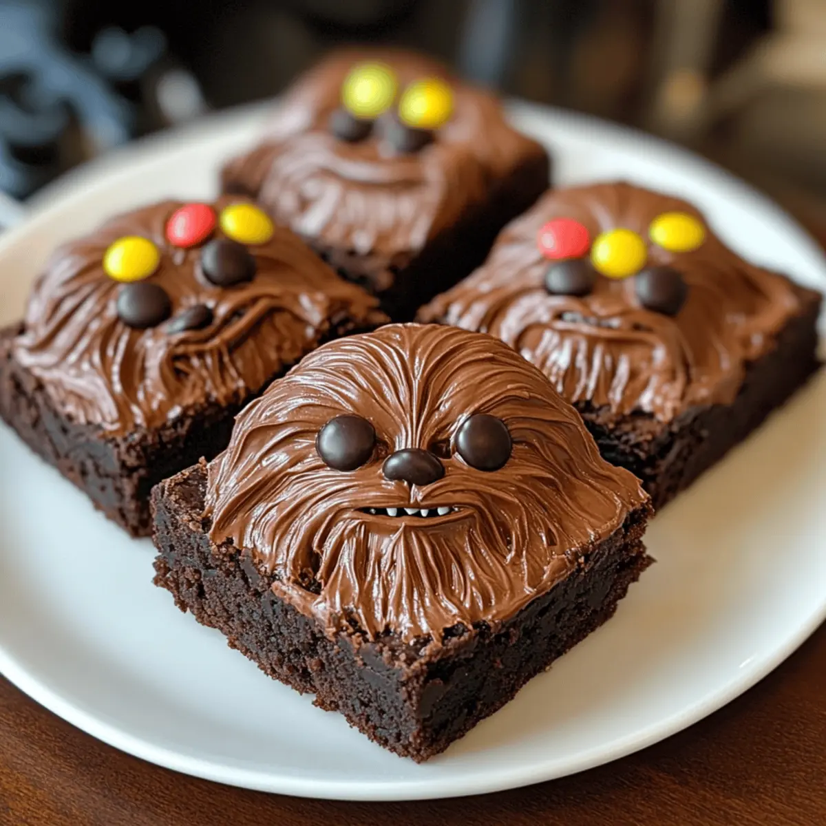 Aller à la recette Imprimer la recetteJ’avais l’impression d’être transporté dans une galaxie lointaine, très lointaine, en préparant ces brownies Chewbacca. Ces douceurs riches et moelleuses ne sont pas qu’un simple dessert ; elles rendent hommage à notre Wookiee préféré tout en transformant n’importe quel rassemblement en une fête mémorable. Parfaites pour les soirées cinéma ou les anniversaires à thème, ces brownies aux aspects ludiques attireront aussi bien les fans de Star Wars que ceux qui cherchent une délicieuse friandise. Et le meilleur ? Leur préparation rapide vous permet de savourer chaque moment de la création de ces chefs-d’œuvre chocolatés. Alors, êtes-vous prêts à découvrir comment réaliser une expérience gourmande digne d’une aventure intergalactique ? Pourquoi ces brownies Chewbacca sont spéciaux ? Un plaisir visuel unique : Leur décoration inspirée du célèbre Chewbacca ajoute une touche amusante à n’importe quel dessert. Texture savoureuse : Avec leur fond moelleux et leur cœur fondant, ces brownies sont un vrai délice. Facilité de préparation : Suivez des étapes simples pour réaliser ces merveilles, parfaites même pour les novices. Polyvalence réjouissante : Que ce soit pour un thème Star Wars ou une simple envie de chocolat, ces brownies s’adaptent à toutes les occasions. Un bon moment à partager : Parfaits pour rassembler amis et famille autour d’un moment gourmand, ils sauront séduire le plus grand nombre ! Ingrédients des Brownies Chewbacca • Si vous êtes prêt à plonger dans l’univers chocolaté de ces brownies, voici ce dont vous aurez besoin : Pour la Pâte Beurre non salé – Ajoute richesse et moiteur, pensez à le fondre pour une consistance parfaite. Pépites de chocolat semi-sucré – Elles apportent une saveur chocolatée profonde et sucrée, vous pouvez les remplacer par des pépites de chocolat noir pour un goût plus intense. Sucre granulé – C’est l’ingrédient qui donne son goût sucré aux brownies; vous pouvez utiliser du sucre de coco pour une option plus saine. Œufs – Ils lient les ingrédients et donnent de la structure; en option, utilisez une compote de pommes non sucrée pour un substitut végétalien. Extrait de vanille – Il rehausse et équilibre la saveur du chocolat. Farine tout usage – Elle structure les brownies; optez pour un mélange de farine sans gluten pour une version sans gluten. Cacao en poudre non sucré – Intensifie la saveur chocolatée, ne le négligez pas ! Sel – Équilibre la douceur et améliore les saveurs. Pour la Décoration Crème au chocolat (pour décor) – Utilisée pour recouvrir les brownies, choisissez-en une de bonne qualité. Pépites de chocolat et bonbons – Parfaits pour créer les caractéristiques de Chewbacca sur le dessus des brownies. Avec ces ingrédients en main, vous êtes prêt à créer des brownies Chewbacca qui raviront votre famille et vos amis tout en ajoutant une touche intergalactique à vos desserts ! Instructions étape par étape pour les Brownies Chewbacca Step 1 : Faire fondre le beurre et le chocolat Dans une casserole, faites fondre 120 g de beurre non salé avec 200 g de pépites de chocolat semi-sucré à feu doux. Remuez régulièrement jusqu’à obtenir un mélange lisse et brillant. Une fois dissous, retirez la casserole du feu et laissez refroidir légèrement pendant environ 10 minutes. Step 2 : Mélanger les ingrédients humides Dans un grand bol, incorporez le mélange de chocolat fondu avec 200 g de sucre granulé. Ajoutez ensuite 3 œufs, un à un, en battant bien après chaque ajout. Terminez par 1 cuillère à café d’extrait de vanille. Ce mélange devrait avoir une texture crémeuse et brillante. Step 3 : Combiner les ingrédients secs Dans un autre bol, tamisez 120 g de farine tout usage, 30 g de cacao en poudre non sucré et une pincée de sel. Ce mélange sec doit être homogène et sans grumeaux. Cela permettra d’assurer que vos brownies Chewbacca auront la structure parfaite. Step 4 : Mélanger les pâtes Incorporez délicatement le mélange sec dans le mélange humide à l’aide d’une spatule, en vous arrêtant juste avant qu’il ne soit complètement homogène. Ce processus peut prendre environ 1 à 2 minutes. Évitez de trop mélanger pour garder vos brownies moelleux et fondants. Step 5 : Cuisson des brownies Préchauffez votre four à 175°C (350°F) et vaporisez un moule carré de 20 cm de côté avec un peu d’huile ou de beurre. Versez la pâte dans le moule et lissez le dessus. Enfournez pendant 20 à 25 minutes, jusqu’à ce qu’un cure-dent inséré au centre en sorte avec quelques miettes humides. Step 6 : Laisser refroidir et glacer Une fois cuits, retirez les brownies du four et laissez-les refroidir complètement dans le moule, environ 30 minutes. Pendant ce temps, préparez votre crème au chocolat. Quand ils sont bien refroidis, étalez une couche généreuse de crème au chocolat sur le dessus. Step 7 : Décorer les brownies Pour finaliser vos brownies Chewbacca, utilisez des pépites de chocolat et des bonbons pour créer les caractéristiques de Chewbacca sur le dessus. Faites preuve de créativité tout en suivant les formes du célèbre Wookiee, et assurez-vous qu’ils soient aussi ludiques que délicieux. Comment conserver et congeler les Brownies Chewbacca Température ambiante : Conservez les brownies Chewbacca dans un contenant hermétique à température ambiante pendant jusqu’à 3 jours pour préserver leur moelleux. Réfrigérateur : Si vous souhaitez prolonger leur durée de vie, placez-les au réfrigérateur dans un récipient hermétique où ils resteront frais jusqu’à une semaine. Congélateur : Pour une conservation plus longue, vous pouvez les congeler pendant jusqu’à 2 mois. Emballez-les individuellement dans du film plastique puis dans un sac congélation pour éviter les brûlures de congélation. Décongélation : P