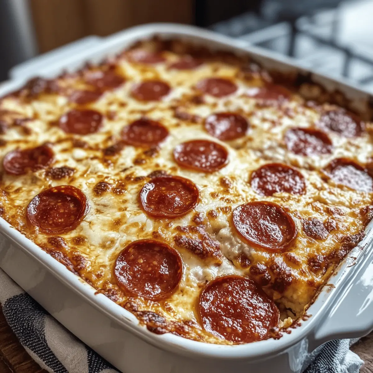 Aller à la recette Imprimer la recetteDans ma quête pour des dîners simples et réconfortants, j’ai découvert une pépite : la casserole de fromage cottage style pizza. Ce plat combine le goût familier et apprécié de la pizza avec une touche saine. Imaginez un mélange crémeux de fromage cottage et de mozzarella, associé à des tranches de pepperoni de dinde savoureuses. Ce dîner faible en glucides est parfait pour les soirées chargées et ne demande que 45 minutes de préparation. Que vous soyez un chef passionné ou simplement en quête d’un plat rapide pour votre famille, cette recette deviendra rapidement un favori. Prêts à en savoir plus sur cette merveille culinaire et ses variations délicieuses ? Pourquoi choisir cette casserole savoureuse ? Simplicité absolue : La préparation de cette casserole de fromage cottage style pizza est rapide et facile, idéale même pour les débutants ! Saveur réconfortante : Combinant le goût classique de la pizza avec une touche saine, chaque bouchée est une explosion de saveurs grâce au mélange de mozzarella et de pepperoni. Polyvalence : Vous pouvez personnaliser cette recette avec des légumes de saison ou varier les fromages pour créer votre propre version. Repas familial : Ce plat est parfait pour rassembler la famille autour de la table, satisfaisant petits et grands, même les plus difficiles. Gain de temps : Préparez-le à l’avance et conservez-le au réfrigérateur ou au congélateur, ce qui est parfait pour les soirs où vous manquez de temps. Ajoutez-y des accompagnements comme une salade fraîche pour un dîner complet ou optez pour des recettes comme nos Pancakes Savoureux Jambon Fromage pour des variations délicieuses. Ingrédients de la casserole de fromage cottage style pizza • Note : Préparez cette casserole de fromage cottage style pizza avec des ingrédients simples et nutritifs pour vos soirées en famille. Pour la base • Fromage cottage – Ajoute de la crémeux et des protéines. Substitution : utilisez de la ricotta pour une texture encore plus lisse. • Oeufs – Agissent comme liant pour les ingrédients. Veillez à ce qu’ils soient bien battus pour une texture homogène. • Mozzarella râpée – Apporte saveur et texture fondante. Alternative : optez pour du fontina ou du cheddar pour varier les plaisirs. Pour le goût • Tranches de pepperoni de dinde – Contribuent au goût pizza. Substitution : utilisez du pepperoni classique ou des légumes hachés pour une version végétarienne. • Parmesan râpé – Ajoute une profondeur salée et savoureuse. Optionnel, mais recommandé pour plus de goût. • Assaisonnement italien – Éveille le plat avec des saveurs herbacées. Remplacez par de l’origan ou du basilic séché si nécessaire. • Poudre d’ail – Fournit une saveur d’ail douce. Vous pouvez aussi utiliser de l’ail frais haché à la place. • Sel et poivre – Essentiels pour assaisonner. Ajustez selon vos préférences. Instructions de la casserole de fromage cottage style pizza Step 1 : Préchauffez le four Préchauffez votre four à 190°C (375°F). Pendant ce temps, graissez un plat de cuisson carré de 23×23 cm (9×9 pouces) avec un peu d’huile ou de beurre pour éviter que la casserole ne colle. Cela garantira un démoulage facile après la cuisson et une belle présentation de votre casserole de fromage cottage style pizza. Step 2 : Préparez le mélange de fromage Dans un grand saladier, incorporez le fromage cottage et les œufs. Utilisez un fouet pour mélanger jusqu’à obtenir une texture lisse et homogène. Cette étape est cruciale pour réaliser une casserole crémeuse et délicieuse. Vous pouvez ajouter une pincée de sel à ce mélange pour rehausser le goût, alors mélangez bien ! Step 3 : Ajoutez les ingrédients savoureux Incorporez la mozzarella râpée, la plupart des tranches de pepperoni de dinde, le parmesan râpé, l’assaisonnement italien, la poudre d’ail, du sel et du poivre dans le mélange. Mélangez soigneusement jusqu’à ce que tous les ingrédients soient bien combinés. Votre casserole de fromage cottage style pizza commence à prendre forme avec ces saveurs délicieuses et réconfortantes. Step 4 : Versez dans le plat préparé Transférez le mélange dans le plat de cuisson que vous avez préparé précédemment. Étalez-le uniformément avec une spatule pour bien le niveler. Cela permettra une cuisson uniforme et une belle texture. Disposez le reste des tranches de pepperoni sur le dessus pour une présentation appétissante qui rappelle authentiquement la pizza. Step 5 : Faites cuire au four Enfournez le plat dans le four préchauffé et laissez cuire pendant 30 à 35 minutes. Vérifiez la cuisson en regardant si le dessus est bien doré et que le fromage bouillonne. Une fois la cuisson terminée, retirez-la et laissez refroidir quelques minutes. La cuisson à la perfection rendra votre casserole de fromage cottage style pizza encore plus savoureuse. Step 6 : Servez avec une sauce marinara Après quelques minutes de repos, découpez votre casserole en portions. Servez chaque morceau avec un peu de sauce marinara pour tremper. Cette délicieuse addition ajoutera une touche d’authenticité inspirée de la pizza à votre plat. Savourez cette création familiale simple et délicieuse qui ravira tous les palais à table ! Que servir avec la casserole de fromage cottage style pizza ? Laissez-vous tenter par des accompagnements simples et savoureux qui sublimeront ce plat réconfortant et familial. Salade fraîche : Une salade verte croquante, agrémentée de tomates cerises et d’une vinaigrette légère, apporte une touche de fraîcheur et équilibre la richesse de la casserole. Légumes vapeur : Des légumes de saison cuits à la vapeur, comme les brocolis ou les haricots verts, ajoutent de la couleur et des nutriments, offrant un contraste agréable avec la texture crémeuse. Pain à l’ail : Servez avec des tranch