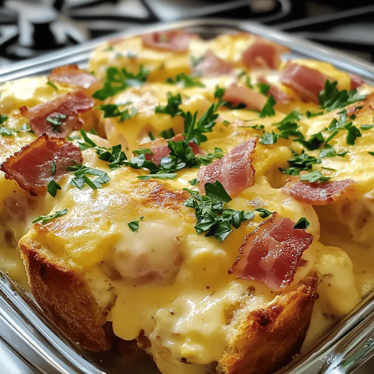 Aller à la recette Imprimer la recetteJe ne peux pas m’empêcher de sourire en pensant aux matinées tranquilles, le doux parfum d’un brunch fait maison flottant dans l’air. Aujourd’hui, je vous invite à découvrir notre Casserole d’œufs Bénédicte, une réinvention chaleureuse de ce classique adoré. En deux simples étapes, cette recette combine des œufs crémeux, du bacon canadien savoureux et des muffins anglais moelleux, le tout nappé d’une sauce hollandaise onctueuse. En seulement 15 minutes de préparation et un temps de repos de 2 heures, vous obtiendrez un plat convivial qui impressionnera vos invités tout en vous permettant de profiter de moments relaxants. Et pour ceux qui cherchent une option sans gluten, n’ayez crainte, des substitutions sont à votre disposition. Alors, prêt à régaler votre équipe de brunch ce week-end? Pourquoi cette casserole est-elle si spéciale ? Simplicité : En seulement 15 minutes de préparation, vous créez un plat savoureux sans stress. Richesse : La combinaison d’œufs crémeux et de sauce hollandaise apporte une profondeur de goût exceptionnelle. Adaptabilité : Changez facilement les ingrédients pour répondre à vos besoins, que ce soit avec du bacon de dinde ou des muffins sans gluten. Partage : Idéale pour vos brunches, cette casserole est un incontournable qui ravira tous vos invités. Nutrition : En ajoutant des épinards ou des champignons, vous boostez la valeur nutritionnelle sans compromettre le goût. Découvrez plus d’options avec nos recettes faciles pour le brunch. Ingrédients de la Casserole d’œufs Bénédicte • Découvrez les composants nécessaires pour réaliser cette délicieuse casserole. Pour la Casserole Bacon canadien – Apporte une saveur savoureuse; vous pouvez le remplacer par du bacon de dinde pour une option plus légère. Muffins anglais – Offrent structure et texture; optez pour des muffins complets ou sans gluten pour une variante différente. Œufs – Essentiels pour la base crémeuse; ils apportent une richesse indispensable. Lait entier – Ajoute de la crémeux; vous pouvez le substituer par du lait écrémé ou du lait d’amande pour une version plus légère. Poudre d’oignon – Renforce la profondeur des saveurs; utilisez des oignons frais si vous le souhaitez. Sel – Essentiel pour rehausser le goût. Poudre d’ail – Offre une touche de salinité; le garlic frais peut aussi être intégré. Poivre noir – Pour l’assaisonnement; le poivre blanc est une alternative que vous pouvez privilégier. Paprika – Apporte couleur et une légère note fumée sur le dessus. Persil frais – Garniture pour un goût frais; vous pouvez le remplacer par de la ciboulette ou de la coriandre selon vos préférences. Sauce hollandaise – Ajoute une richesse décadente; qu’elle soit achetée ou faite maison, cela rendra votre casserole encore plus délicieuse. Instructions de la Casserole d’œufs Bénédicte Step 1: Préparation du plat Commencez par préchauffer votre four à 190°C (375°F). Pendant ce temps, graissez un plat de cuisson de 9×13 pouces avec un spray de cuisson antiadhésif. Cela empêchera la casserole d’attacher et facilitera le service. Step 2: Premiers niveaux Disposez la moitié du bacon canadien coupé en dés uniformément au fond du plat préparé. Assurez-vous que chaque coin est bien rempli afin que chaque bouchée de la casserole d’œufs Bénédicte ait une belle saveur de bacon. Step 3: Ajout des muffins Éparpillez la moitié des morceaux de muffins anglais sur le bacon canadien, en les couvrant uniformément. Cette couche apportera une texture moelleuse à la casserole, créant un équilibre parfait avec le goût savoureux du bacon. Step 4: Répétition des couches Répétez le processus avec le reste du bacon canadien et les morceaux de muffins anglais. Cela créera une belle structure stratifiée pour votre casserole, favorisant une cuisson homogène et une expérience gustative riche. Step 5: Préparation du mélange d’œufs Dans un grand bol, fouettez ensemble les œufs, le lait entier, la poudre d’oignon, le sel, la poudre d’ail et le poivre noir jusqu’à obtenir un mélange lisse. Cette étape est cruciale pour créer une base crémeuse et savoureuse pour votre casserole. Step 6: Verser le mélange Versez doucement le mélange d’œufs sur les couches de bacon et de muffins dans le plat. Assurez-vous que le mélange est bien réparti afin que chaque morceau de la casserole d’œufs Bénédicte soit imprégné de cette délicieuse préparation. Step 7: Temps de repos Couvrez le plat avec un film plastique et placez-le au réfrigérateur pendant au moins 2 heures, ou idéalement toute la nuit. Ce temps de repos permettra aux saveurs de s’imprégner et à la casserole de se solidifier légèrement. Step 8: Cuisson Une fois le temps de repos écoulé, retirez le film plastique et saupoudrez le dessus de paprika pour une belle couleur. Enfournez la casserole à 190°C (375°F) et laissez cuire pendant 35 à 40 minutes. Elle est prête lorsque le dessus est doré et que les œufs sont bien pris. Step 9: Préparation de la sauce hollandaise Pendant que la casserole cuit, préparez la sauce hollandaise selon les instructions sur l’emballage, ou réchauffez-en une faite maison. Cette sauce riche est le complément parfait à votre casserole d’œufs Bénédicte. Step 10: Service Une fois la cuisson terminée, sortez la casserole du four et laissez-la reposer quelques minutes. Arrosez la casserole d’œufs Bénédicte de sauce hollandaise tiède et garnissez de persil frais avant de servir chaud. Savourez ce plat réconfortant et convivial! Variations de la Casserole d’œufs Bénédicte Personnalisez votre casserole d’œufs Bénédicte avec ces délicieuses suggestions pour la rendre encore plus savoureuse et adaptée à vos goûts. Bacon de dinde : Remplacez le bacon canadien par du bacon de dinde pour une option plus 