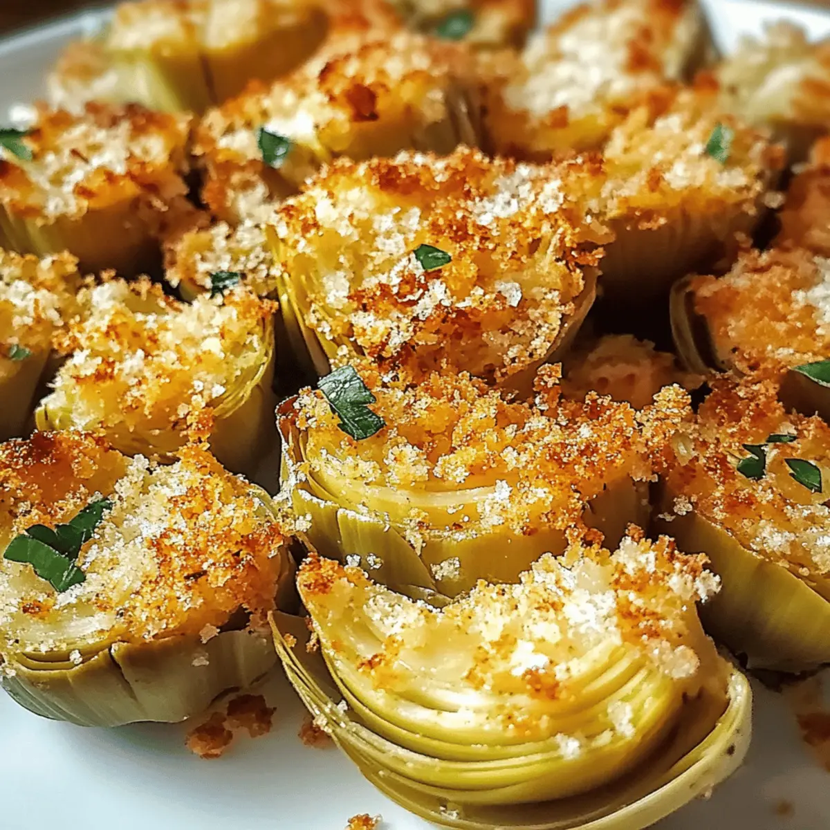 Aller à la recette Imprimer la recetteLors d’une récente soirée entre amis, j’ai entendu des éclats de rire mêlés au crépitement alléchante des cœurs d’artichaut au parmesan qui cuisaient au four. Ces délicieux bouchées croustillantes, avec leur juxtaposition parfaite de croquant et de tendreté, sont rapidement devenues la star de la soirée. La recette des cœurs d’artichaut croustillants au parmesan est non seulement d’une simplicité désarmante, mais également un véritable régal qui ravira vos invités. En moins de 30 minutes, vous obtiendrez un apéritif irrésistible, idéal pour toutes les occasions. Que vous soyez en tête-à-tête ou entouré d’amis, ces bouchées sont le moyen parfait de dire adieu à la malbouffe. N’attendez plus, êtes-vous prêt à découvrir le secret de ce délice ? Pourquoi aimer les cœurs d’artichaut croustillants ? Simplicité incroyable : Cette recette nécessite très peu d’ingrédients et un temps de préparation rapide, vous permettant de régaler vos amis sans stress. Saveur irrésistible : Le fromage parmesan fondant et les cœurs d’artichaut tendres se marient parfaitement pour un goût authentique qui ravira tous les palais. Texture parfaite : Avec leur extérieur croustillant et leur intérieur moelleux, ces bouchées sauront capter l’attention de vos invités. Polyvalence : Servez-les avec différentes sauces, comme un dip marinara ou de l’aïoli, pour varier les plaisirs selon les goûts de chacun. Convient à tous : Idéal pour les végétariens et ceux qui cherchent une alternative au fast-food, c’est une recette qui charme tous les convives. Gagnez du temps : Prêtes en moins de 30 minutes, ces délicieuses bouchées sont le choix parfait pour une soirée réussie ! Ingrédients pour les cœurs d’artichaut croustillants au parmesan • Pour réaliser ces bouchées irrésistibles, voici ce dont vous aurez besoin. Pour les cœurs d’artichaut Cœurs d’artichaut – Privilégiez ceux en conserve ou congelés, et choisissez ceux immergés dans l’eau pour un goût optimal. Pour le croustillant Fromage parmesan – Optez pour du parmesan fraîchement râpé, qui apportera une saveur et une texture inégalées. Chapelure – Utilisez de la chapelure panko pour une finition plus légère et croustillante que la chapelure ordinaire. Poudre d’ail – Un petit ajout savoureux qui rehausse le goût, choisissez de la poudre d’ail de qualité pour un effet maximum. Origan séché – Ce classique de la cuisine italienne apporte une note aromatique délicieuse, un soupçon suffit pour sublimer le plat. Pour la cuisson Huile d’olive – Indispensable pour obtenir une belle croûte dorée; l’huile d’olive extra vierge est recommandée pour sa richesse en goût. Sel et poivre – Ces assaisonnements de base rehaussent les autres saveurs; n’oubliez pas d’ajuster selon votre goût. Avec ces ingrédients, vous êtes sur le point de créer des cœurs d’artichaut croustillants au parmesan qui feront sensation ! Instructions pour les cœurs d’artichaut croustillants au parmesan Step 1 : Préchauffez le four Commencez par préchauffer votre four à 200°C (400°F). Pendant que le four chauffe, vous aurez tout le temps de préparer les cœurs d’artichaut et vos autres ingrédients. Assurez-vous que la grille est placée au centre du four pour une cuisson uniforme et une belle dorure. Step 2 : Préparez les cœurs d’artichaut Prenez vos cœurs d’artichaut en conserve ou congelés, puis égouttez-les soigneusement et rincez-les à l’eau froide. Ensuite, séchez-les délicatement avec des serviettes en papier pour enlever l’excès d’humidité. Cette étape est cruciale pour garantir que vos cœurs d’artichaut croustillants au parmesan deviennent bien dorés et croustillants. Step 3 : Mélangez les ingrédients de la croûte Dans un grand bol, combinez le parmesan fraîchement râpé, la chapelure panko, la poudre d’ail, l’origan, le sel et le poivre. Mélangez soigneusement les ingrédients ensemble jusqu’à obtenir un mélange homogène. Ce mélange est essentiel pour obtenir le croustillant désiré sur vos cœurs d’artichaut. Step 4 : Enrobez les cœurs d’artichaut Avec des pinces, trempez chaque cœur d’artichaut dans un filet d’huile d’olive, en veillant à bien les enrober. Ensuite, plongez-les dans le mélange de chapelure, en les retournant pour obtenir une couverture complète. Cette étape garantira que chaque bouchée de vos cœurs d’artichaut croustillants au parmesan sera savoureuse. Step 5 : Disposez sur la plaque de cuisson Placez les cœurs d’artichaut enrobés sur une plaque de cuisson recouverte de papier sulfurisé. Assurez-vous de laisser suffisamment d’espace entre chaque cœur pour permettre une circulation d’air optimale, ce qui contribue à leur croustillant. Cela évitera également qu’ils ne collent ensemble pendant la cuisson. Step 6 : Enfournez Enfournez vos cœurs d’artichaut dans le four préchauffé et laissez-les cuire pendant 25 à 30 minutes. Surveillez-les attentivement à mi-chemin pour vous assurer qu’ils ne brûlent pas. À la fin de la cuisson, ils doivent être bien dorés et croustillants, prêts à être dégustés. Step 7 : Servez avec plaisir Laissez vos cœurs d’artichaut croustillants au parmesan refroidir légèrement avant de les servir. Ils sont délicieux seuls ou accompagnés de sauce marinara pour tremper. Que ce soit pour un apéritif entre amis ou un en-cas en tête-à-tête, ces bouchées satisferont toutes les papilles ! Préparer à l’avance les cœurs d’artichaut croustillants au parmesan Les cœurs d’artichaut croustillants au parmesan sont idéaux pour les préparatifs en avance, permettant ainsi de gagner un temps précieux lors de vos soirées ou dîners. Vous pouvez préparer les cœurs d’artichaut et les enrober dans le mélange de chapelure jusqu’à 24 heures avant de les cuire; il s