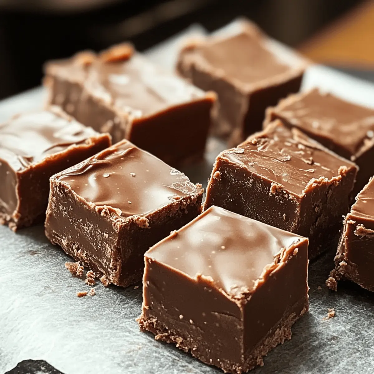 Aller à la recette Imprimer la recetteLe doux parfum de chocolat qui danse dans ma cuisine me rappelle les plus belles après-midis passées à confectionner des douceurs. Aujourd’hui, je vous invite à découvrir ma recette de fudge au chocolat crémeux décadent, une gourmandise sans cuisson qui allie simplicité et réconfort. En seulement quelques étapes, vous obtiendrez un délice riche et crémeux, parfait pour les fêtes ou pour se faire plaisir au quotidien. Ce fudge, personnalisable à souhait, est un véritable plaisir à partager : ajoutez des noix croquantes ou une touche de caramel pour encore plus de saveurs. Alors, êtes-vous prêt à vous plonger dans cette expérience chocolatée qui séduira tous vos proches ? Pourquoi ce fudge vous séduira-t-il ? Facilité inégalée : En seulement quelques étapes, vous obtiendrez un fudge au chocolat crémeux qui ne nécessite aucune cuisson. Saveurs riches : Le mélange de chocolat semi-sucré et de lait concentré sucré crée un équilibre parfait entre douceur et réconfort. Personnalisable : Jouez avec vos ingrédients en ajoutant des noix croquantes ou un tourbillon de caramel pour le rendre unique. Plaira à coup sûr : Que ce soit pour une réunion de famille ou une soirée tranquille, ce fudge saura ravir tous vos invités. Texture parfaite : La consistance onctueuse fait en sorte que chaque bouchée soit un moment de plaisir à savourer lentement. Ingrédients pour le Fudge au Chocolat Crémeux Décadent • Aucun doute, vous adorerez ce fudge au chocolat crémeux décadent fait maison ! Pour le Fudge Lait concentré sucré – Apporte une onctuosité irrésistible ; optez pour une version entière pour une texture parfaite. Beurre – Ajoute de la richesse ; utilisez du beurre non salé pour contrôler la saveur. Pépites de chocolat semi-sucré – C’est l’ingrédient clé pour un goût chocolaté intense ; choisissez des pépites de haute qualité. Extrait de vanille – Renforce la profondeur des saveurs ; privilégiez l’extrait de vanille naturel. Sel – Équilibre la douceur ; ajustez selon vos préférences. Pour les Variations Noix hachées – Ajoutez des noix pour une texture croquante et un goût délicieux. Mini guimauves – Incorporez-les pour une touche de moelleux ! Sauce caramel salé – Un tourbillon de caramel apportera une explosion de saveurs sucrées et salées. Extraits aromatisés – Expérimentez avec de l’extrait de menthe poivrée ou d’amande pour des variations uniques. Fruits secs – Ajoutez des fruits pour une touche chewy qui rehausse le tout. Instructions pour le Fudge au Chocolat Crémeux Décadent Step 1: Préparer le moule Commencez par graisser un moule carré de 20×20 cm ou le tapisser de papier sulfurisé. Cela permettra de retirer facilement le fudge une fois qu’il sera prêt. Assurez-vous que le moule est bien préparé avant de commencer à chauffer les ingrédients pour faciliter le démoulage ultérieur. Step 2: Faire fondre les ingrédients Dans une casserole moyenne, placez le lait concentré sucré et le beurre. Faites chauffer à feu doux, en remuant constamment pendant environ 2 à 3 minutes jusqu’à ce que le tout soit fondu et bien amalgamé. L’aspect doit être lisse et crémeux, sans morceaux de beurre visibles. Step 3: Ajouter le chocolat Incorporez les pépites de chocolat semi-sucré à votre mélange fondu. Continuez de remuer en douceur pendant environ 5 minutes jusqu’à ce que le chocolat soit complètement fondu et que le mélange soit homogène. À ce stade, la texture doit être brillante et veloutée, sans grumeaux. Step 4: Rehausser la saveur Retirez la casserole du feu et ajoutez l’extrait de vanille ainsi qu’une pincée de sel pour équilibrer la douceur. Mélangez bien jusqu’à ce que tous les ingrédients soient parfaitement intégrés. Le fudge au chocolat crémeux décadent doit avoir une odeur irrésistible et une couleur riche. Step 5: Verser le fudge Versez délicatement le mélange de fudge dans le moule préparé, en veillant à l’étaler uniformément avec une spatule. Prenez un moment pour lisser le dessus afin d’obtenir une surface propre et belle. Laissez le fudge reposer à température ambiante pendant environ 30 minutes pour commencer à durcir. Step 6: Réfrigérer Placez le moule au réfrigérateur et laissez le fudge refroidir pendant au moins 2 heures. Ce temps est crucial pour que le fudge prenne une texture ferme et fondante. Après ce réfrigérateur, la consistance doit être suffisamment solide pour être coupée en carrés. Step 7: Couper et servir Une fois le fudge bien refroidi et ferme, retirez-le délicatement du moule en utilisant le papier sulfurisé pour faciliter cette étape. Coupez-le en carrés avec un couteau bien aiguisé pour obtenir des morceaux uniformes. Servez le fudge au chocolat crémeux décadent comme un délice à partager ou à déguster seul ! Conseils pour le meilleur Fudge au Chocolat Chocolat de qualité : Choisissez des pépites de chocolat semi-sucré de haute qualité pour un goût riche et profond qui fera toute la différence dans votre fudge au chocolat crémeux décadent. Contrôle de la chaleur : Faites fondre le chocolat lentement à feu doux et remuez constamment. Cela évitera que le chocolat ne brule, ce qui pourrait affecter la texture finale. Temps de refroidissement : Laissez le fudge parfaitement refroidir à température ambiante avant de le réfrigérer ; cela aide à obtenir une texture crémeuse et évite qu’il ne devienne granuleux. Stockage approprié : Conservez le fudge au chocolat crémeux décadent dans un contenant hermétique à température ambiante pour préserver sa texture et sa saveur jusqu’à une semaine. Variations créatives : N’hésitez pas à expérimenter en ajoutant des noix, des guimauves ou des sauces caramels pour personnaliser votre fudge et le rendre encore plus irrésistible. Préparation à l’avance pour le Fudge au