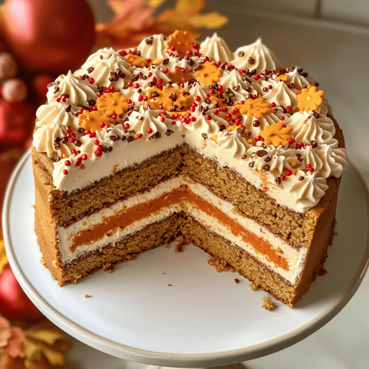 Aller à la recette Imprimer la recetteLe doux parfum des biscuits qui cuisent au four évoque instantanément l’automne, un moment de chaleur et de réconfort. Lorsque j’ai découvert la recette du Gâteau aux biscuits d’automne, je savais qu’il deviendrait un incontournable dans ma cuisine. Ce délicieux dessert, moelleux et parfumé, est idéal pour célébrer Friendsgiving, la Thanksgiving ou simplement pour égayer une après-midi. Avec sa texture fondante et ses options de décoration personnalisables, je vous promets qu’il va séduire votre famille et vos amis à chaque bouchée. En plus, cette recette est si simple que même les plus novices peuvent y arriver, tout en apportant une touche festive à toutes vos célébrations automnales. Alors, prêt à laisser libre cours à votre créativité culinaire et à faire de ce gâteau une star de la saison ? Pourquoi ce gâteau est-il unique ? Simplicité: La recette est facile à suivre, permettant à tous, même aux débutants, de réaliser un dessert incroyable. Parfum d’automne: Avec ses saveurs réconfortantes et sa douceur, ce gâteau évoque parfaitement la saison. Personnalisation: Vous pouvez décorer selon vos goûts, que ce soit avec une crème au beurre colorée ou des bonbons d’automne. Polyvalence: Parfait pour toutes les occasions, du Friendsgiving à une simple soirée en famille. Gagnant sûr: Servez-le avec un café ou un cidre chaud, et il séduira tous vos invités, tout comme les Biscuits Croquants Chocolat ou la délicieuse Tarte Aux Pommes! Ingrédients pour le gâteau aux biscuits d’automne • Préparez-vous à savourer ce gâteau aux biscuits d’automne irrésistible ! Pour la pâte Beurre non salé – Assurez-vous qu’il soit bien ramolli à température ambiante pour un mélange facile. Sucre brun clair – Ajoute une douceur et un léger goût de mélasse; vous pouvez le remplacer par du sucre brun foncé pour un goût plus riche. Sucre granulé – Renforce la douceur et aide à obtenir la bonne texture. Œuf large – Permet de lier les ingrédients pour une texture moelleuse. Extrait de vanille pur – Apporte une douceur aromatique; l’extrait d’amande peut être utilisé pour une saveur différente. Farine tout usage – Fournit la structure essentielle; pesez-la pour plus de précision et remplacez-la par de la farine sans gluten si besoin. Fécule de maïs – Garantit une texture douce et tendre. Bicarbonate de soude – Agit comme agent levant pour aider le gâteau à gonfler. Sel – Équilibre la douceur et rehausse les saveurs. Pépites de chocolat semi-sucrées – Pour ajouter une touche chocolatée; vous pouvez les remplacer par des pépites de chocolat au lait ou noir, ou ajouter des bonbons M&M colorés pour un effet automnal. Pour le glaçage Crème au beurre vanille – Complète parfaitement le gâteau; vous pouvez la colorer et l’aromatiser selon vos envies. Préparez ces ingrédients et laissez la magie de l’automne transformer votre cuisine ! Instructions pour Gâteau aux biscuits d’automne irrésistible et moelleux Step 1: Préchauffez le four Préchauffez votre four à 175 °C (350 °F). Préparez un moule à printemps de 28 cm en tapissant le fond de papier sulfurisé. Cela facilitera le démoulage du gâteau une fois cuit, garantissant que votre Gâteau aux biscuits d’automne conserve sa belle forme. Step 2: Mélangez les ingrédients secs Dans un grand bol, tamisez ensemble la farine, la fécule de maïs, le bicarbonate de soude et le sel. Mélanger soigneusement et mettez de côté pour permettre aux saveurs de se combiner. Cette étape est cruciale pour obtenir une texture uniforme et moelleuse dans votre gâteau. Step 3: Créez le mélange crémeux Utilisez un batteur sur socle ou un mélangeur électrique pour battre le beurre ramolli avec le sucre brun et le sucre granulé dans un grand bol. Faites-le pendant environ 2 minutes jusqu’à obtenir une consistance lisse et crémeuse. Cette étape ajoute de l’air au mélange, ce qui contribue à rendre votre Gâteau aux biscuits d’automne léger et moelleux. Step 4: Ajoutez l’œuf et la vanille Incorporez l’œuf large et l’extrait de vanille dans le mélange crémeux. Battez à vitesse moyenne jusqu’à ce que les ingrédients soient bien combinés et que la texture soit homogène. Cela donnera au gâteau une saveur riche et une belle douceur aromatique, essentielle pour cet automne. Step 5: Combinez les ingrédients secs et humides Tout en continuant à battre à basse vitesse, ajoutez progressivement le mélange de farine aux ingrédients humides. Mélangez jusqu’à ce que juste combiné, en veillant à ne pas trop travailler la pâte, ce qui pourrait rendre le gâteau dense. Vous devez obtenir une pâte épaisse et légèrement collante. Step 6: Incorporez les pépites de chocolat À l’aide d’une spatule en silicone, incorporez délicatement les pépites de chocolat semi-sucrées dans la pâte. Cela ajoutera des touches chocolatées délicieuses et visuellement attrayantes à votre Gâteau aux biscuits d’automne. Veillez à ce qu’elles soient réparties uniformément pour que chaque bouchée soit chocolatée. Step 7: Étalez la pâte dans le moule Versez la pâte dans le moule à printemps préparé et étalez-la uniformément avec une spatule en silicone. Appuyez doucement pour la niveler et, si désiré, ajoutez quelques pépites de chocolat supplémentaires sur le dessus pour la décoration. Cette étape garantit que le gâteau cuira de manière uniforme et aura l’air appétissant. Step 8: Cuisez le gâteau Enfournez votre gâteau pendant 15 à 17 minutes, ou jusqu’à ce qu’il soit légèrement doré sur les bords et que le centre soit bien pris. Pour vérifier la cuisson, insérez un cure-dent au centre; s’il en ressort propre, votre Gâteau aux biscuits d’automne est prêt. Laissez refroidir dans le moule pendant 10 minutes avant de le démouler. Step 9: Prépa