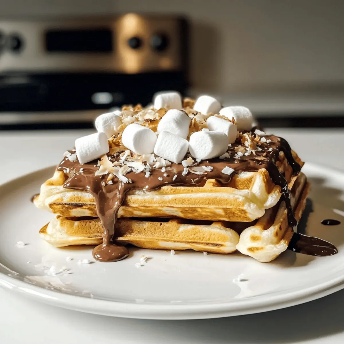 Ces Gaufres Smores avec Nutella et noix de coco grillée regroupent les saveurs des célèbres S'mores en un petit déjeuner réconfortant.
