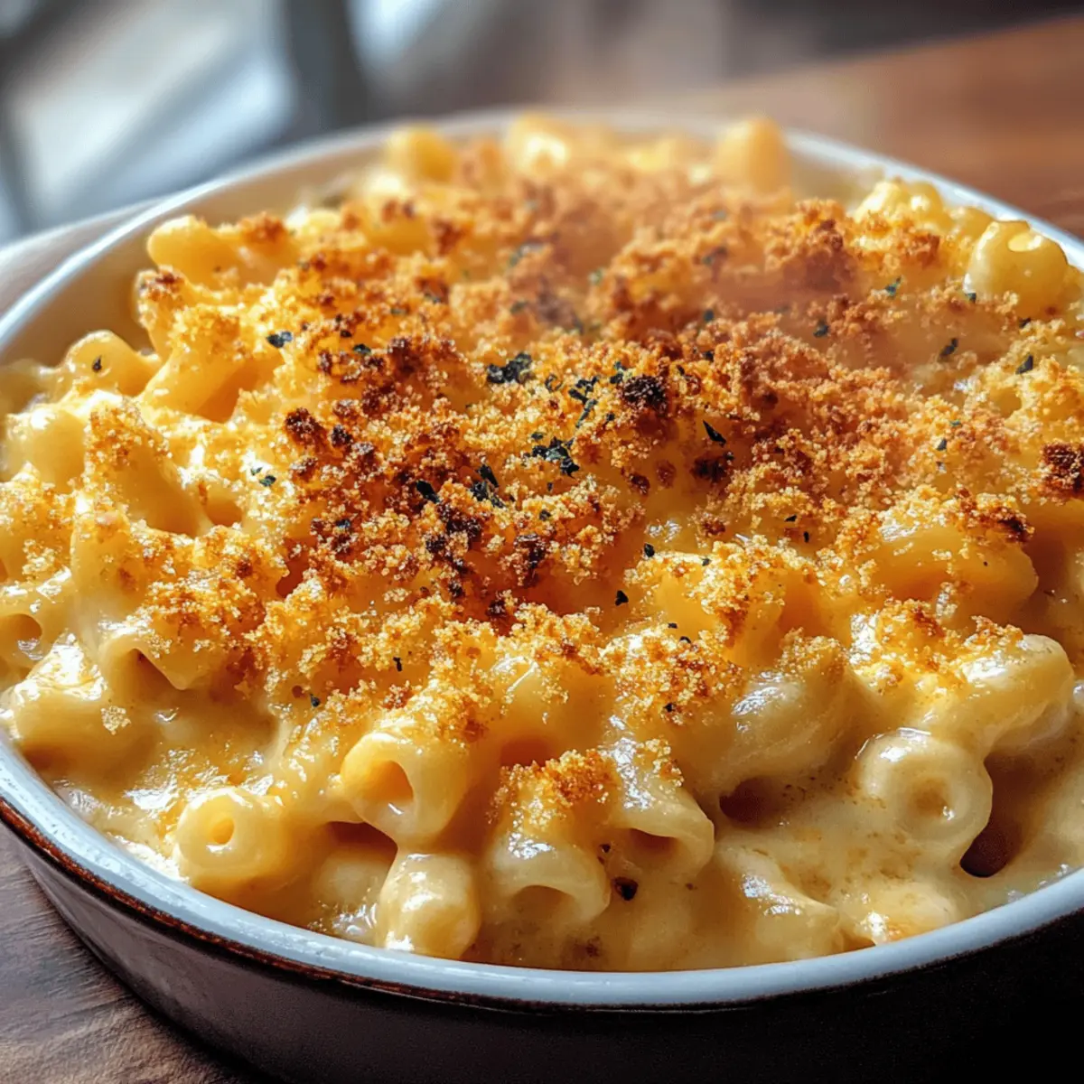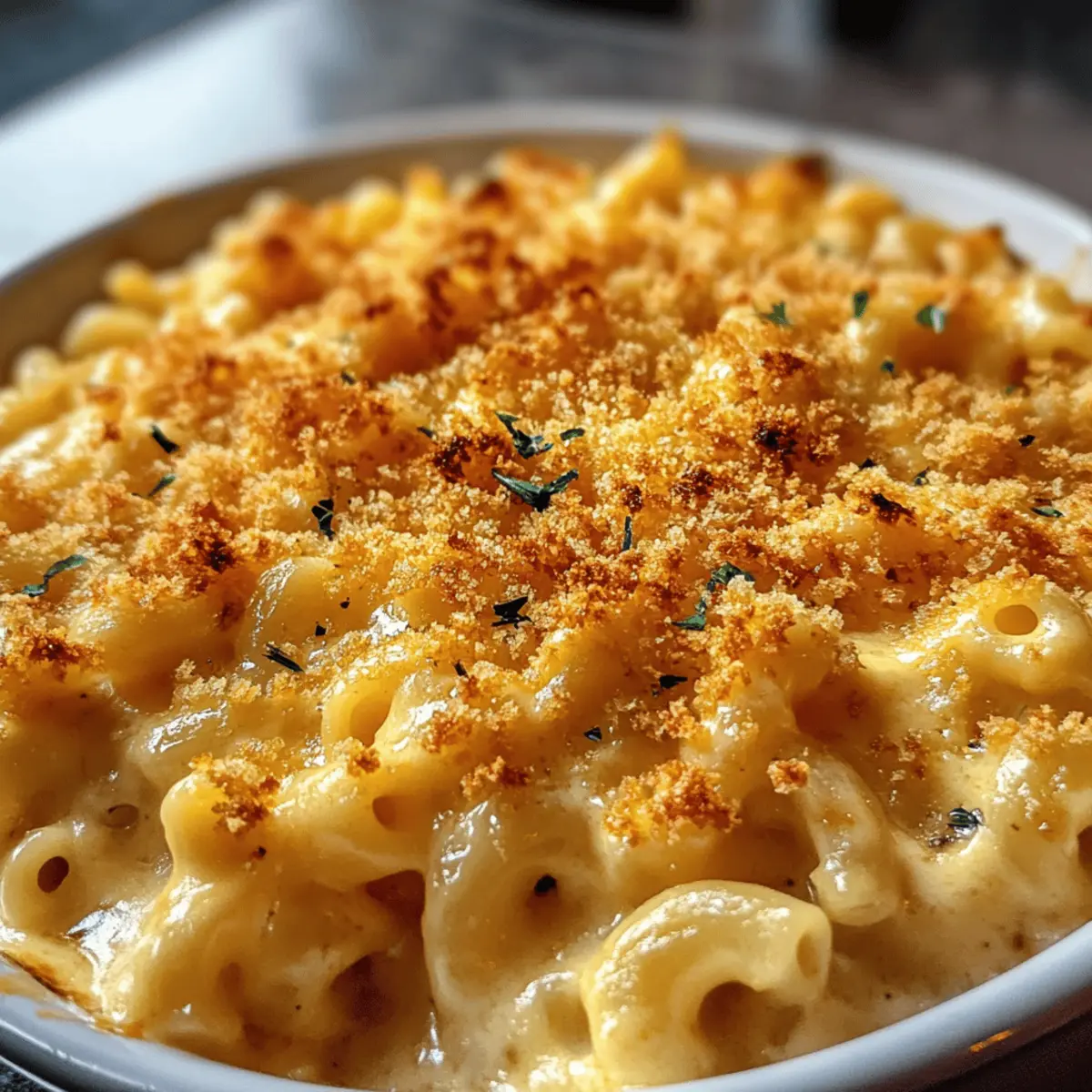 Une recette réconfortante de macaroni au fromage crémeux au four avec une croûte dorée et une sauce onctueuse.