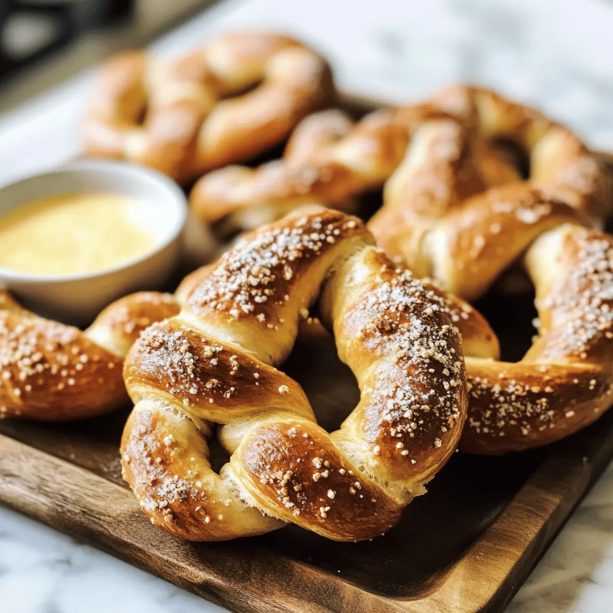 Aller à la recette Imprimer la recetteEn flânant dans les rues d’une fête foraine, l’odeur waftante des bretzels chauds chatouille mes narines. Aujourd’hui, je vous invite à recréer cette magie à la maison avec ma recette de Préparation de Bretzels Doux de Base. Facile et rapide, cette méthode vous garantit des bretzels moelleux et légèrement dorés, parfaits pour un apéritif improvisé ou une soirée cocooning. Et le meilleur dans tout ça ? Vous n’aurez besoin que de quelques ingrédients simples que vous avez probablement déjà sous la main ! Alors, êtes-vous prêt à plonger dans le plaisir de la pâtisserie maison et à déguster vos créations avec une sauce au fromage ou une moutarde ? Pourquoi choisir cette recette de bretzels ? Simplicité : Pas besoin d’être un chef étoilé pour réussir ces bretzels. La recette est simple et ne nécessite que quelques ingrédients basiques. Saveur irrésistible : La combinaison de la pâte moelleuse et du léger goût de beurre crée une expérience gustative addictive. Rapide à préparer : Avec un temps de préparation minimal, vous pouvez savourer ces délices en un rien de temps. Polyvalence : Que vous le serviez avec une sauce au fromage pour une soirée cinéma ou pour impressionner vos amis lors d’un apéritif, ce bretzel s’adapte à toutes les occasions. N’hésitez pas à essayer diverses variantes comme les bretzels au fromage ou saupoudrés de sucre à la cannelle pour une touche sucrée. C’est une recette que vous voudrez garder sous la main ! Ingrédients pour la Préparation de Bretzels Doux de Base • Note : Ces ingrédients simples vous permettront de réaliser des bretzels doux qui émerveilleront vos invités ! Pour la Pâte • Eau tiède (1 tasse) – Hydrate la pâte et active la levure. Vous pouvez remplacer par du lait pour un goût plus riche. • Levure sèche active (2 1/4 cuillères à café) – Agit comme agent levant pour faire lever la pâte. La levure instantanée peut être utilisée sans activation préalable. • Sucre brun (1/4 tasse) – Apporte une douceur et favorise la caramélisation. Remplacez par du sucre blanc si nécessaire. • Farine tout usage (3-4 tasses) – Donne la structure au bretzel. Pour une option plus saine, utilisez de la farine de blé entier. • Sel (1 cuillère à café) – Rehausse le goût. Utilisez du sel gros pour saupoudrer dessus. Pour le Bain de Bicarbonate • Bicarbonate de soude (1/4 tasse) – Crée la croûte signature en faisant bouillir les bretzels. Assurez-vous que le bicarbonate est frais pour de meilleurs résultats. Pour le Fini • Beurre fondu (3 cuillères à soupe) – Ajoute de la richesse et aide le sel à adhérer. Vous pouvez utiliser de la margarine comme substitut. Ces ingrédients vous mèneront tout droit vers des bretzels maison irrésistibles, parfaits pour un encas convivial ou un apéritif surprise entre amis ! Instructions pour la Préparation de Bretzels Doux de Base Step 1 : Préparer la Pâte Dans un grand bol, combinez une tasse d’eau tiède, les 2 1/4 cuillères à café de levure sèche active et le 1/4 de tasse de sucre brun. Laissez reposer pendant 5 à 10 minutes, jusqu’à ce que le mélange devienne mousseux. Ensuite, ajoutez progressivement 3 à 4 tasses de farine tout usage et 1 cuillère à café de sel, en remuant jusqu’à former une pâte homogène. Step 2 : Pétrir la Pâte Sur une surface légèrement farinée, pétrissez la pâte pendant environ 10 à 15 minutes à la main, ou 5 minutes avec un robot pétrisseur, jusqu’à obtenir une texture lisse et élastique. Une bonne pétrissage est essentielle pour le développement du gluten, garantissant des bretzels doux et moelleux. Formez une boule avec la pâte. Step 3 : Première Levée Placez la boule de pâte dans un grand bol graissé, couvrez-la d’un film plastique et laissez lever dans un endroit chaud pendant environ 1 heure, ou jusqu’à ce qu’elle double de volume. Vérifiez que la pâte a bien gonflé, signe que la levure fonctionne correctement pour la préparation de bretzels doux. Step 4 : Façonner les Bretzels Une fois la pâte levée, préchauffez votre four à 230°C (450°F). Divisez la pâte en portions égales et roulez-les en longs cordons d’environ 60 cm. Formez des bretzels en croisant les extrémités et en les enroulant. Placez-les sur une plaque de cuisson recouverte de papier sulfurisé. Step 5 : Bain de Bicarbonate Dans une grande casserole, portez à ébullition 6 tasses d’eau et 1/4 de tasse de bicarbonate de soude. Faites tremper chaque bretzel dans ce mélange pendant 30 secondes, puis égouttez-les légèrement. Ce bain crée la croûte caractéristique des bretzels doux. Step 6 : Cuisson des Bretzels Disposez les bretzels sur la plaque de cuisson, badigeonnez-les avec 3 cuillères à soupe de beurre fondu et saupoudrez-les de gros sel. Enfournez pour 12 à 15 minutes, jusqu’à ce qu’ils soient dorés et brillants. Surveillez leur cuisson pour éviter qu’ils ne deviennent trop foncés. Step 7 : Refroidir et Servir Après la cuisson, laissez les bretzels refroidir quelques minutes avant de les déguster. Ils sont parfaits accompagnés d’une sauce au fromage ou d’une moutarde pour un apéritif convivial. Profitez de vos bretzels doux et savoureux, qui raviront sûrement vos invités ! Préparation en avance des Bretzels Doux de Base Les Bretzels Doux de Base se révèlent parfaits pour les cuisiniers pressés grâce à leur possibilité de préparation anticipée. Vous pouvez préparer la pâte jusqu’à 24 heures avant cuisson : une fois pétrie, placez-la dans un bol graissé, couvrez-la hermétiquement et entreposez-la au réfrigérateur. Lorsque vous êtes prêt à savourer ces délices, laissez la pâte reposer à température ambiante pendant 30 minutes avant de façonner les bretzels. En ce qui concerne la cuisson, surveillez bien le temps afin d’obtenir une belle dorure. Ainsi, mêm