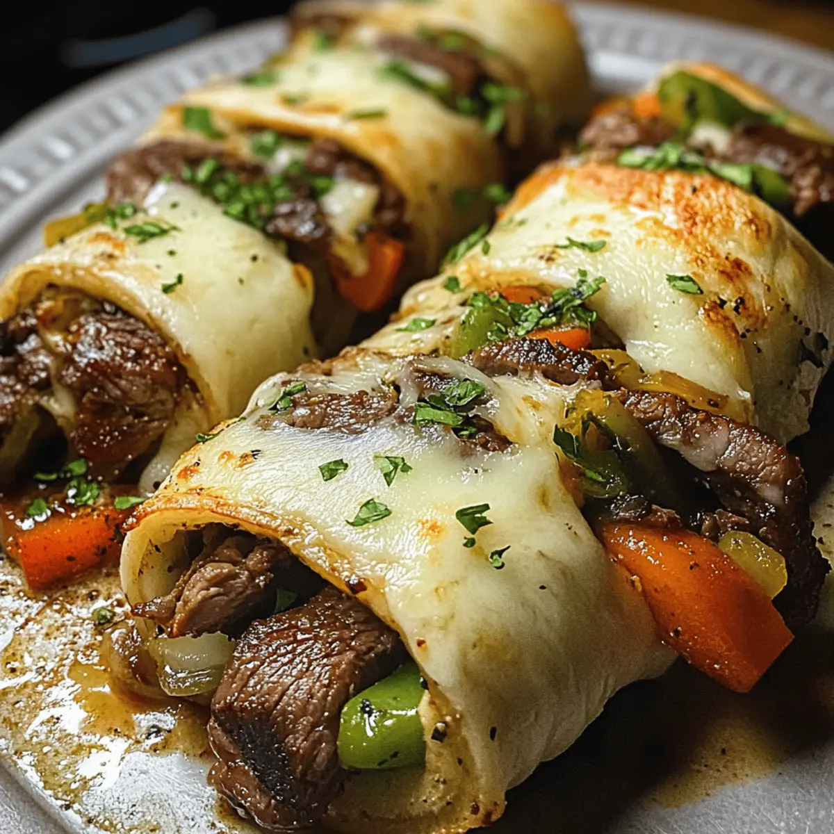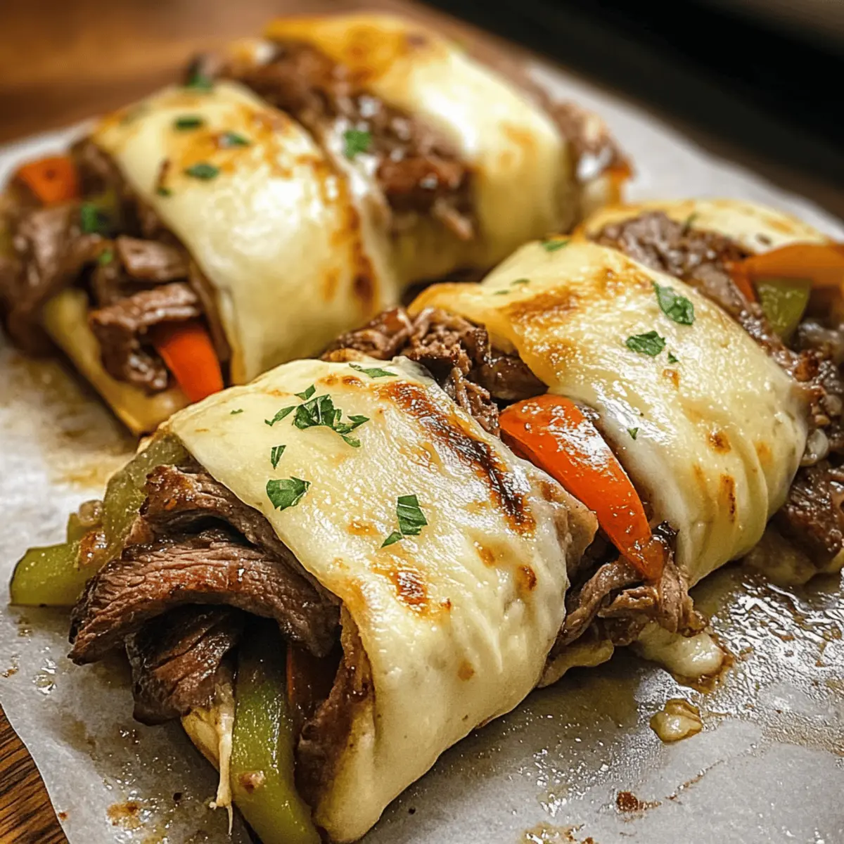 Aller à la recette Imprimer la recetteChaque bouchée de ces Roulés de Cheesesteak Philly Keto évoque une explosion de saveurs réconfortantes, comme un voyage culinaire au cœur de Philadelphie, mais sans les excès de glucides. En un rien de temps, vous pourrez savourer des morceaux tendres de bœuf rôti enveloppés dans une fondue de fromage provolone et des légumes sautés colorés. Ce plat non seulement fait le bonheur des amateurs de cuisine saine, mais il s’apprête à devenir le nouveau favori des soirées chargées, avec une préparation rapide et seulement 350 calories par portion. Prêt à donner un coup de fouet à votre routine de repas ? Ces roulés crémeux et savoureux se prêtent à de délicieuses variations qui vont éveiller votre créativité en cuisine ! Pourquoi essayer ces Roulés de Cheesesteak ? Simplicité épatante : Avec une préparation rapide, ces roulés sont parfaits pour les soirs où le temps presse. Saveurs réconfortantes : Chaque bouchée offre une fusion délicieuse de bœuf rôti, légumes sautés et fromage qui ravira même les plus exigeants. Adaptabilité : N’hésitez pas à expérimenter avec différentes viandes ou légumes pour personnaliser votre plat. Découvrez nos idées de variations pour plus d’inspiration ! Régal pour tous : Que ce soit pour un dîner en famille ou une fête, ces roulés feront l’unanimité à coup sûr. Santé et gourmandise : Avec seulement 350 calories par portion, savourez ce plat sans culpabilité tout en respectant votre régime keto. Ingrédients pour Roulés de Cheesesteak Philly Keto • Pour les Roulés : Huile d’olive – Idéale pour faire sauter les légumes et prévenir qu’ils n’adhèrent à la poêle; un bon choix est l’huile d’avocat pour une note de saveur différente. Boeuf rôti finement tranché – Source principale de protéines, offrant une expérience authentique de cheesesteak; vous pouvez le remplacer par du poulet ou du steak tranché si vous le souhaitez. Poivron vert – Apporte un croquant agréable; il peut être remplacé par d’autres couleurs de poivrons ou omis pour un goût simplifié. Oignon – Offre douceur et profondeur; les oignons jaunes ou rouges sont aussi de bonnes options. Champignons – Ajoutent de l’umami et de l’humidité; vous pouvez les remplacer par de la courgette ou les omettre pour une option encore plus faible en glucides. Poudre d’ail – Ajoute une merveilleuse arôme; vous pouvez le remplacer par de l’ail frais pour un goût plus intense. Sel et poivre – Assaisonnements essentiels pour rehausser les saveurs; ajustez selon vos préférences. Fromage provolone – Sert de contenant et de garniture fondante; d’autres fromages fondants tels que la mozzarella peuvent être utilisés pour varier les plaisirs. Instructions pour Roulés de Cheesesteak Philly Keto Step 1 : Préchauffage du four Préchauffez votre four à 175°C (350°F) pour assurer une fonte homogène du fromage provolone plus tard. Cela créera un environnement optimal pour faire fondre le fromage en une croûte dorée et savoureuse qui enveloppe parfaitement vos Roulés de Cheesesteak Philly Keto. Step 2 : Sauter les légumes Dans une grande poêle, faites chauffer l’huile d’olive à feu moyen jusqu’à ce qu’elle soit légèrement scintillante. Ajoutez le poivron vert, l’oignon et les champignons tranchés, et faites sauter le tout pendant environ 5 minutes, jusqu’à ce que les légumes soient ramollis et commencent à se caraméliser, développant ainsi des arômes délicieux. Step 3 : Incorporer le bœuf Ajoutez le bœuf rôti tranché aux légumes dans la poêle. Assaisonnez avec la poudre d’ail, le sel et le poivre, puis mélangez soigneusement. Faites cuire l’ensemble pendant 3 à 5 minutes supplémentaires, jusqu’à ce que le mélange soit bien chaud et que tous les ingrédients soient harmonisés, prêts à être enroulés. Step 4 : Préparer les rouleaux Disposez les tranches de fromage provolone sur un plan de travail propre. Prenez une portion du mélange de viande et de légumes, placez-la sur chaque tranche de fromage, puis enroulez le fromage autour de la garniture en serrant bien. Placez les rouleaux, la fermeture vers le bas, dans un plat de cuisson préalablement graissé pour qu’ils restent bien en place. Step 5 : Cuisson au four Enfournez les Roulés de Cheesesteak Philly Keto dans le four préchauffé. Faites cuire pendant environ 10 minutes, ou jusqu’à ce que le fromage soit bien bouillonnant et légèrement doré sur le dessus. Cela donnera une belle texture fondante qui ravira vos papilles. Step 6 : Laisser reposer Une fois cuits, retirez les roulés du four et laissez-les reposer pendant quelques minutes. Cela permettra au fromage de bien se fixer, rendant les rouleaux plus faciles à manipuler. Cette étape est essentielle pour maintenir la structure de vos Roulés de Cheesesteak Philly Keto avant de servir. Step 7 : Servir et déguster Servez vos Roulés de Cheesesteak Philly Keto encore chauds, accompagnés d’une salade verte ou d’une sauce de votre choix si vous le souhaitez. Chaque bouchée promet un mélange irrésistible de saveurs et de textures, idéal pour un repas rapide et satisfaisant. Conseils de Conservation pour Roulés de Cheesesteak Philly Keto Réfrigérateur : Conservez les roulés dans un récipient hermétique au réfrigérateur pendant 3 à 4 jours. Cela préserve la fraîcheur tout en maintenant les saveurs intactes. Congélateur : Si vous souhaitez stocker les roulés plus longtemps, vous pouvez les congeler jusqu’à 2 mois. Emballez-les individuellement dans du film plastique puis placez-les dans un sac de congélation pour éviter les brûlures de congélation. Réchauffage : Pour réchauffer, préchauffez votre four à 180°C (350°F) et placez les roulés congelés ou réfrigérés sur une plaque de cuisson. Faites chauffer pendant 10 à 15 minutes jusqu’à ce que le fromage soit 