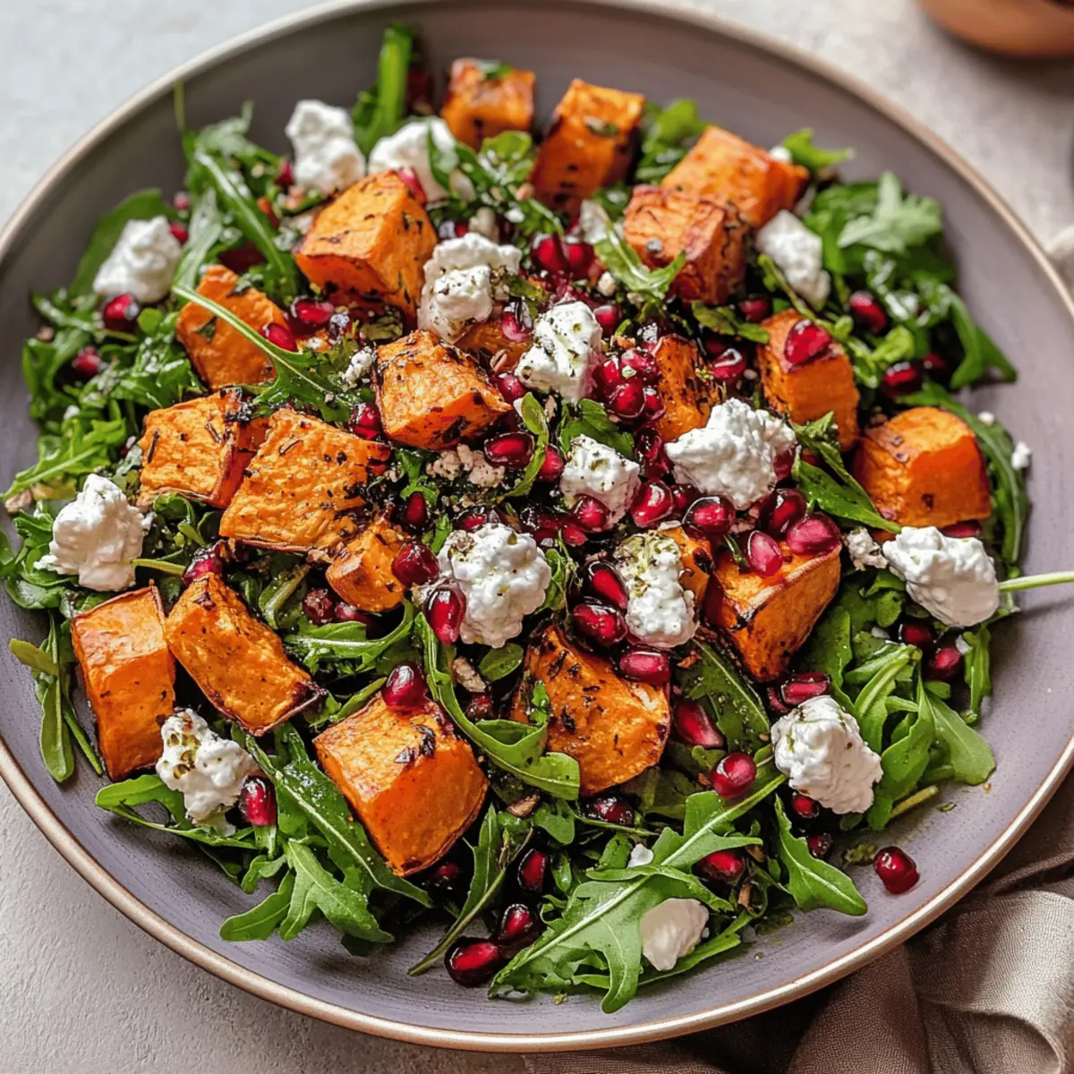 Aller à la recette Imprimer la recetteChaque bouchée de cette salade de patates douces rôties au fromage de chèvre vous transporte au cœur de l’automne. Imaginez des morceaux de patates douces tendres, caramélisées à la perfection, fluctuant avec la douceur crémeuse du fromage de chèvre et le croquant savoureux des pignons de pin. Cette recette irrésistible est non seulement un régal pour les yeux, mais elle est également parfaite pour des repas rapides et sains, que ce soit pour un déjeuner léger ou pour impressionner vos invités lors d’une fête. Avec sa vinaigrette balsamique pétillante, cette salade apporte une touche de fraîcheur et de vitalité à votre table. Alors, prêt à rehausser votre routine culinaire avec cette délicieuse combinaison de saveurs et de textures ? Pourquoi cette salade est-elle si spéciale ? Exquise combinaison de saveurs : La douceur des patates douces rôties s’harmonise parfaitement avec le fromage de chèvre crémeux, créant un équilibre idéal de goûts. Texture croquante : Les pignons de pin apportent un croquant irrésistible, tandis que l’arugula ajoute une fraîcheur désaltérante. Facilité de préparation : En seulement quelques étapes, vous pouvez créer un plat qui impressionnera vos invités, parfait pour les occasions festives ou un repas rapide. Options de variétés : N’hésitez pas à personnaliser cette salade en ajoutant des légumes verts de saison ou en remplaçant le fromage de chèvre par du feta si vous le souhaitez. Santé avant tout : Cette salade est légère, nutritive et adaptée aux régimes végétariens, faisant d’elle une excellente option pour ceux qui cherchent à manger équilibré. Éclat visuel : Avec ses couleurs vives et ses textures contrastées, ce plat est une véritable œuvre d’art sur votre table, assurant qu’il sera apprécié de tous. Ingrédients pour la salade de patates douces rôties au fromage de chèvre • Pour cette salade savoureuse, assurez-vous d’avoir les bons ingrédients pour maximiser la saveur et la texture! Pour les patates douces Patate douce – Une base sucrée et riche en nutriments qui se caramélise délicieusement à la cuisson. Poudre d’ail – Ajoute une profondeur de goût; vous pouvez utiliser de l’ail frais pour une saveur plus prononcée. Flocons de sel de mer – Rehausse les saveurs; peut être remplacé par du sel normal. Huile d’olive extra vierge – Utilisée pour rôtir et ajouter de la richesse; l’huile d’avocat peut servir de substitution. Poivre noir concassé – Pour une touche supplémentaire de piquant; le poivre frais est toujours meilleur. Pour le mélange de salade Roquette – Apporte fraîcheur et une pointe de piquant; la laitue ou le kale sont de bonnes alternatives. Pignons de pin – Apportent une délicieuse texture croquante; remplacez-les par des noix ou des amandes si vous le souhaitez. Arilles de grenade – Offrent des éclats de douceur et de couleur; les pommes coupées en dés peuvent faire l’affaire si vous préférez. Fromage de chèvre – Élément crémeux essentiel; vous pouvez éventuellement utiliser de la feta pour une saveur différente. Oignon rouge – Apporte une touche de couleur et de piquant; les échalotes sont une option plus douce. Pour la vinaigrette Vinaigre balsamique – Apporte une acidité équilibrée; l’utilisation d’un vinaigre balsamique vieilli en rehaussera la saveur. Moutarde à grain entier – Ajoute du peps à la vinaigrette; la moutarde de Dijon est un bon substitut. Miel – Apporte une douceur qui équilibre l’acidité; pour une option végétalienne, utilisez du sirop d’érable. Cette salade de patates douces rôties au fromage de chèvre est un véritable régal qui allie santé et plaisir! Instructions pour la salade de patates douces rôties au fromage de chèvre Step 1: Préchauffer le four Préchauffez votre four à 180°C. Pendant que le four chauffe, préparez une plaque de cuisson en la couvrant de papier sulfurisé. Cela empêchera les patates douces de coller et facilitera le nettoyage après la cuisson. Step 2: Rôtir les patates douces Dans un grand bol, mélangez les morceaux de patate douce avec de l’huile d’olive, de la poudre d’ail, des flocons de sel de mer et du poivre noir concassé. Étalez les patates douces sur la plaque de cuisson et enfournez pendant environ 50 minutes, jusqu’à ce qu’elles soient dorées et tendres à l’extérieur. Retournez-les à mi-cuisson pour assurer une cuisson uniforme. Step 3: Préparer la vinaigrette Dans un petit bol, fouettez ensemble le vinaigre balsamique, la moutarde à grain entier, le miel et un peu d’huile d’olive jusqu’à ce que le mélange soit homogène. Cette vinaigrette apportera une touche d’acidité à votre salade de patates douces rôties au fromage de chèvre. Réservez-la pour l’instant. Step 4: Faire griller les pignons de pin Déposez les pignons de pin sur une petite plaque et mettez-les au four pendant 4 à 5 minutes, jusqu’à ce qu’ils soient dorés et parfumés. Restez attentif, car ils peuvent brûler rapidement. Une fois grillés, retirez-les du four et laissez-les refroidir. Step 5: Assembler la salade Lorsque les patates douces sont refroidies à température ambiante, rassemblez dans un grand saladier la roquette, les patates douces rôties et les rondelles d’oignon rouge. Arrosez le tout avec la vinaigrette que vous avez préparée et mélangez délicatement pour bien enrober les ingrédients sans les écraser. Step 6: Finir la salade Transférez la salade de patates douces rôties au fromage de chèvre sur un plat de service. Ajoutez le fromage de chèvre émietté, les pignons de pin grillés et les arilles de grenade sur le dessus. Servez immédiatement pour profiter de toutes les textures et saveurs. Conseils d’expert pour la salade de patates douces rôties au fromage de chèvre Préparation adéquate : Coupez les patates douces en morc