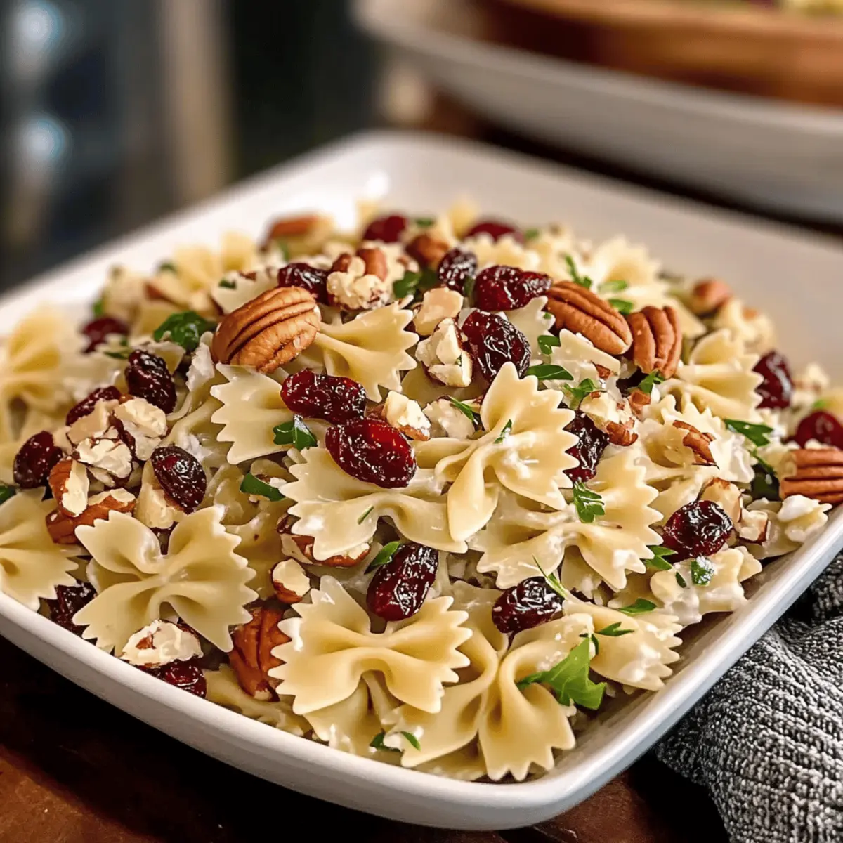 Aller à la recette Imprimer la recetteEn feuilletant un vieux carnet de recettes, je suis tombé sur une pépite qui m’a instantanément transporté vers les pique-niques d’été : la Salade de pâtes en nœud papillon aux canneberges. Cette recette scintillante allie la douceur des canneberges à la texture croquante des noix grillées, faisant de ce plat un choix parfait pour vos réunions estivales. En seulement 20 minutes, vous serez prêt à impressionner vos invités avec un accompagnement qui peut être préparé à l’avance, idéal pour les repas partagés. Préparez-vous à savourer la simplicité et la fraîcheur d’une salade qui, une fois réfrigérée, n’en est que meilleure. Curieux de découvrir comment cette délicieuse création peut facilement s’adapter à vos préférences ? Pourquoi cette salade est-elle incontournable ? Simplicité : Préparez cette salade en seulement 20 minutes, parfaite pour les débutants et ceux pressés ! Saveur fraîche : L’alliance des canneberges sucrées et des noix croquantes offre une explosion de saveurs qui ravira vos papilles. Polyvalence : Vous pouvez facilement remplacer les ingrédients selon vos goûts ou les saisons, rendant cette salade personnalisable à l’infini. Pour une touche encore plus délicieuse, essayez d’incorporer une vinaigrette maison qui rehaussera chaque bouchée. Préparation à l’avance : Idéale pour les pique-niques et les fêtes, elle se prépare à l’avance et se conserve bien, vous permettant de profiter de votre temps avec vos invités. Attrait collectif : Parfaite pour partager, cette salade a tout pour plaire et se marie à merveille avec des viandes grillées ou une simple salade verte. Ingrédients pour la salade de pâtes en nœud papillon aux canneberges • Cette recette est aussi simple que délicieuse, découvrez les ingrédients essentiels : Pour la salade Pâtes en nœud papillon (12 oz) – Apporte structure et forme amusante, idéale pour capturer la vinaigrette. Vous pouvez substituer avec des pâtes courtes comme des penne. Dinde cuite (2 tasses, hachée) – Ajoute des protéines et de la consistance. Remplacez par du poulet rôti pour varier les plaisirs. Céleri (1/2 tasse, coupé) – Contribue avec du croquant et de la fraîcheur. Pour une touche plus sucrée, remplacez-le par des poivrons. Canneberges séchées (2/3 tasse) – Apportent une douce texture masticable. Vous pouvez utiliser des raisins secs à la place. Noix de pécan ou amandes grillées (1/3 tasse, hachées) – Offrent croquant et saveur. Les noix ou les graines de tournesol font également un bon substitut. Oignons verts (1/4 tasse, tranchés) – Apportent une légère note d’oignon. Des oignons normaux ou des ciboules peuvent être utilisés. Pour la vinaigrette Vinaigrette aux graines de pavot (2/3 tasse) – Ajoute une saveur sucrée et acidulée, n’hésitez pas à tester une vinaigrette maison pour un goût encore plus savoureux. Mayonnaise (1/3 tasse) – Apporte de la crémeux à la vinaigrette. Vous pouvez opter pour du yaourt grec pour une version plus légère. Vinaigre de cidre de pomme (2 cuillères à soupe) – Équilibre la vinaigrette avec de l’acidité, échangez-le contre du vinaigre de vin blanc, si vous préférez. Sucre granulé (1 cuillère à café, optionnel) – Pour sucrer la vinaigrette selon vos goûts; n’hésitez pas à l’omettre pour une salade moins sucrée. Profitez de la préparation de cette salade de pâtes en nœud papillon aux canneberges, parfaite pour cet été ! Instructions étape par étape pour la Salade de pâtes en nœud papillon aux canneberges Step 1 : Grillez les noix Dans une poêle sèche à feu moyen, ajoutez les noix de pécan ou les amandes hachées. Faites-les griller pendant 3 à 5 minutes, en remuant régulièrement, jusqu’à ce qu’elles soient dorées et dégagent un arôme agréable. Une fois prêtes, retirez-les du feu et laissez-les refroidir dans une assiette. Step 2 : Faites cuire les pâtes Portez une grande casserole d’eau salée à ébullition. Ajoutez les pâtes en nœud papillon et faites-les cuire selon les instructions du paquet, généralement 8 à 10 minutes, jusqu’à ce qu’elles soient al dente. Une fois cuites, égouttez-les et rincez-les sous l’eau froide pour arrêter la cuisson et les refroidir rapidement. Step 3 : Préparez la vinaigrette Dans un petit bol, combinez la vinaigrette aux graines de pavot, la mayonnaise, le vinaigre de cidre de pomme et le sucre granulé, si vous le souhaitez. Mélangez bien avec un fouet jusqu’à obtenir une texture lisse et homogène. Goûtez et ajustez l’assaisonnement selon votre préférence avant de mettre de côté. Step 4 : Assemblez la salade Dans un grand saladier, incorporez les pâtes refroidies, la dinde hachée, le céleri coupé, les canneberges séchées et les oignons verts tranchés. Ajoutez également les noix grillées pour une bonne texture croquante. Mélangez doucement les ingrédients pour les répartir harmonieusement dans le saladier. Step 5 : Ajoutez la vinaigrette Versez la vinaigrette préparée sur la salade de pâtes en nœud papillon aux canneberges et mélangez délicatement pour bien enrober tous les ingrédients. Assurez-vous que chaque pâte soit recouverte de vinaigrette pour une explosion de saveurs à chaque bouchée. Step 6 : Réfrigérez avant de servir Couvrez le saladier avec un film plastique et placez-le au réfrigérateur pendant au moins 1 heure. Cela permettra aux saveurs de se mélanger et à la salade de se raffermir. Servez bien frais pour apprécier la texture et le goût de cette délicieuse salade, parfaite pour l’été. Préparation à l’avance de la Salade de pâtes en nœud papillon aux canneberges La préparation de cette Salade de pâtes en nœud papillon aux canneberges est un rêve pour les cuisiniers occupés ! Vous pouvez cuire les pâtes et les rincer sous l’eau froide jusqu’à 24 heures à l’a